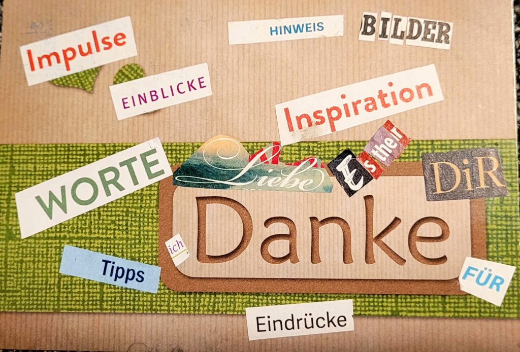 Manchmal bekam ich mehrere Dankeschöns pro Tag, auch „Arbeitsproben“ in Form von umgesetzten Texten sind bei mir eingegangen. Nach Abschluss des Kalenders sind Briefe und Karten in meinen analogen Briefkasten geflattert – und eine Anfrage, als Expertin auf einem digitalen Schreib-Summit teilzunehmen. Ich bin gespannt, wie es damit weiter geht.